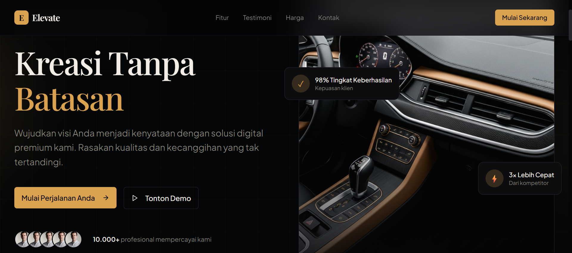 Landing page untuk produk digital atau layanan dengan konversi tinggi.